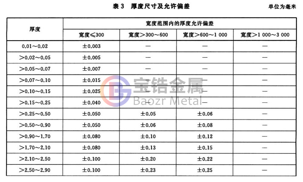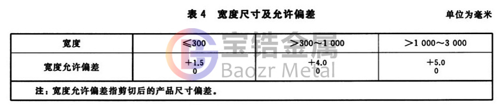 3.3.1 板材、帶材、箔材尺寸及允許偏差見表3、表4、表5,或由供需雙方協(xié)商制定。